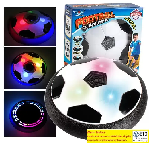 Este increíble balón flotante e iluminado se desliza suavemente sobre el piso gracias a su base de aire y su borde de espuma protectora que evita golpes y daños.
