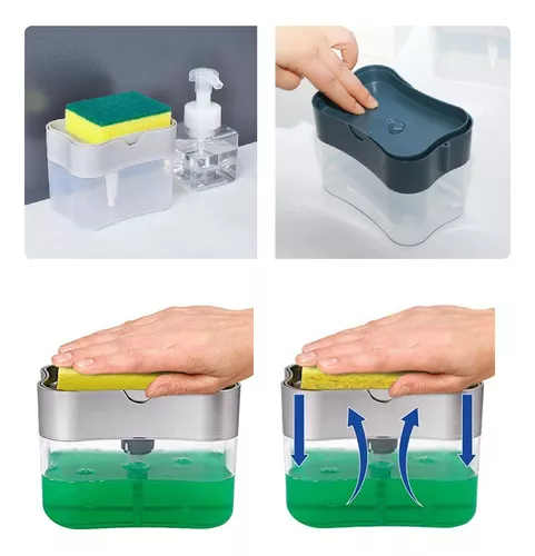 diseño innovador dispensador de jabón para lavar platos sin pintura de recubrimiento barata que no se desvanecerá para siempre. la bomba dispensadora de jabón puede presionar más de 50000 veces. aplicar fácilmente jabón de una mano presione la placa superior del carrito dispensador de jabón para platos con una mano y dispense el jabón directamente sobre la esponja. el recipiente dispensador de jabón para platos contiene 3 esponjas de alta calidad. y contiene todas las esponjas, depuradores, trapos, estropajos, etc.