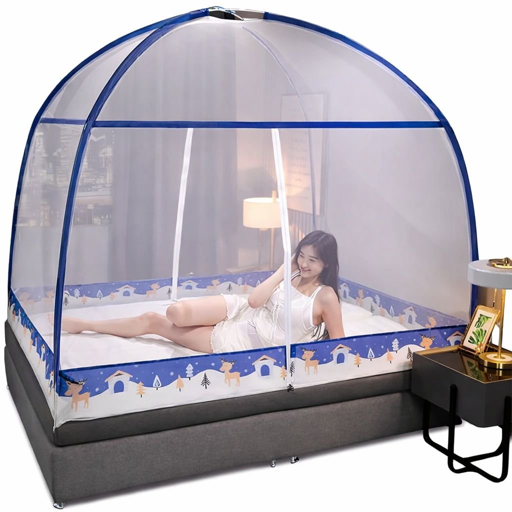 Toldillo mosquitero grande tipo carpa, ideal para proteger tu cama de mosquitos e insectos mientras permite una excelente ventilación. Su diseño práctico facilita la instalación y brinda mayor comodidad para descansar sin interrupciones.