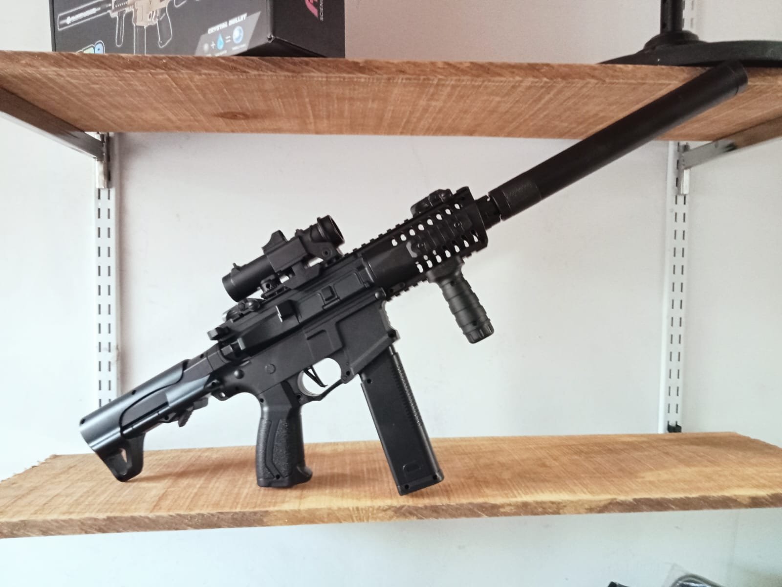 ¡Descubre la nueva experiencia en entretenimiento táctico con nuestro subfusil de hidrogel modelo ARP9! Equipado con todo lo que necesitas para horas de diversión: