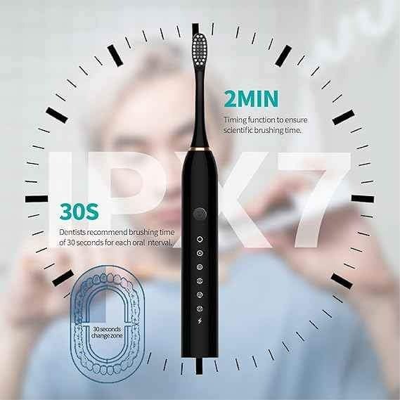 Potente limpieza sónica: El cepillo de dientes eléctrico adopta tecnología sónica avanzada, que puede realizar una limpieza potente y de bajo ruido por trastes de alta frecuencia. En comparación con los cepillos de dientes ordinarios, los cepillos de dientes sónicos pueden producir hasta 45,000 limpiezas eléctricas microsónicas/min, que pueden llevar líquido profundamente a los dientes, alcanzando eficazmente las profundidades y realizando una limpieza profunda. Con la ayuda de nuestro cepillo de dientes ultrasónico, la salud de los dientes y las encías se puede mejorar en solo 2 semanas.