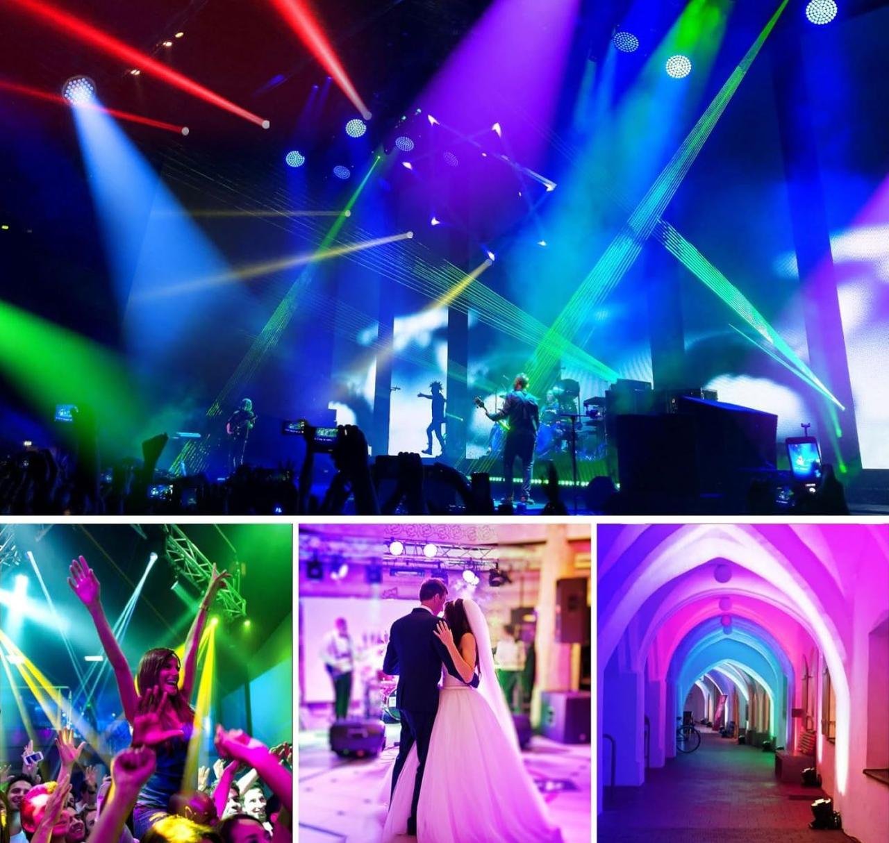 Las luces DMX están diseñadas con un prisma de seis y las luces cristalinas, la luz es más ancha y la luz es más hermosa. Estas luces par son ideales para DJ, karaoke, salón de baile, KTV, discoteca, pub, teatro, iglesia, club, bar, centro comercial, J-show, Halloween, Navidad, boda, etc.