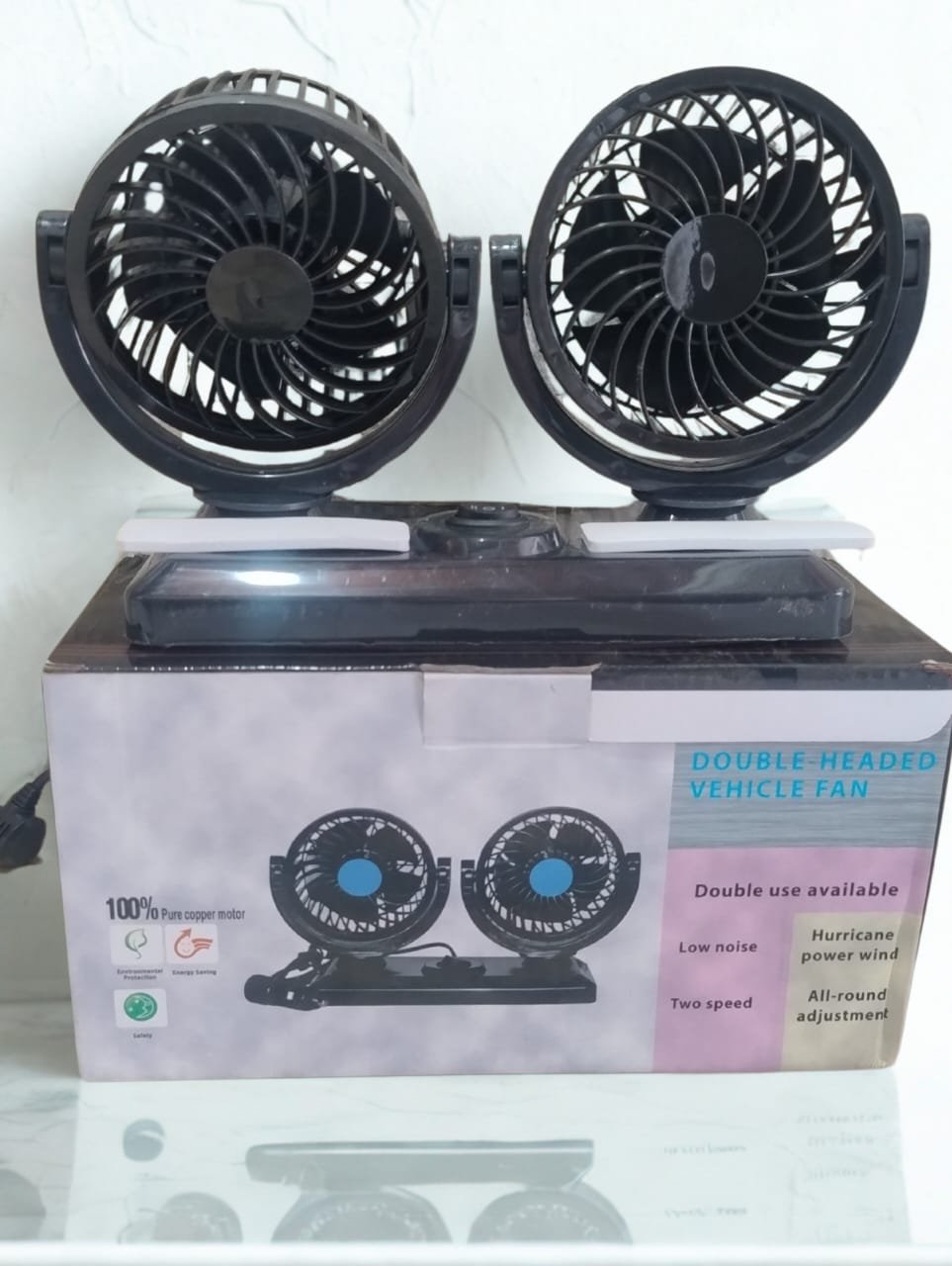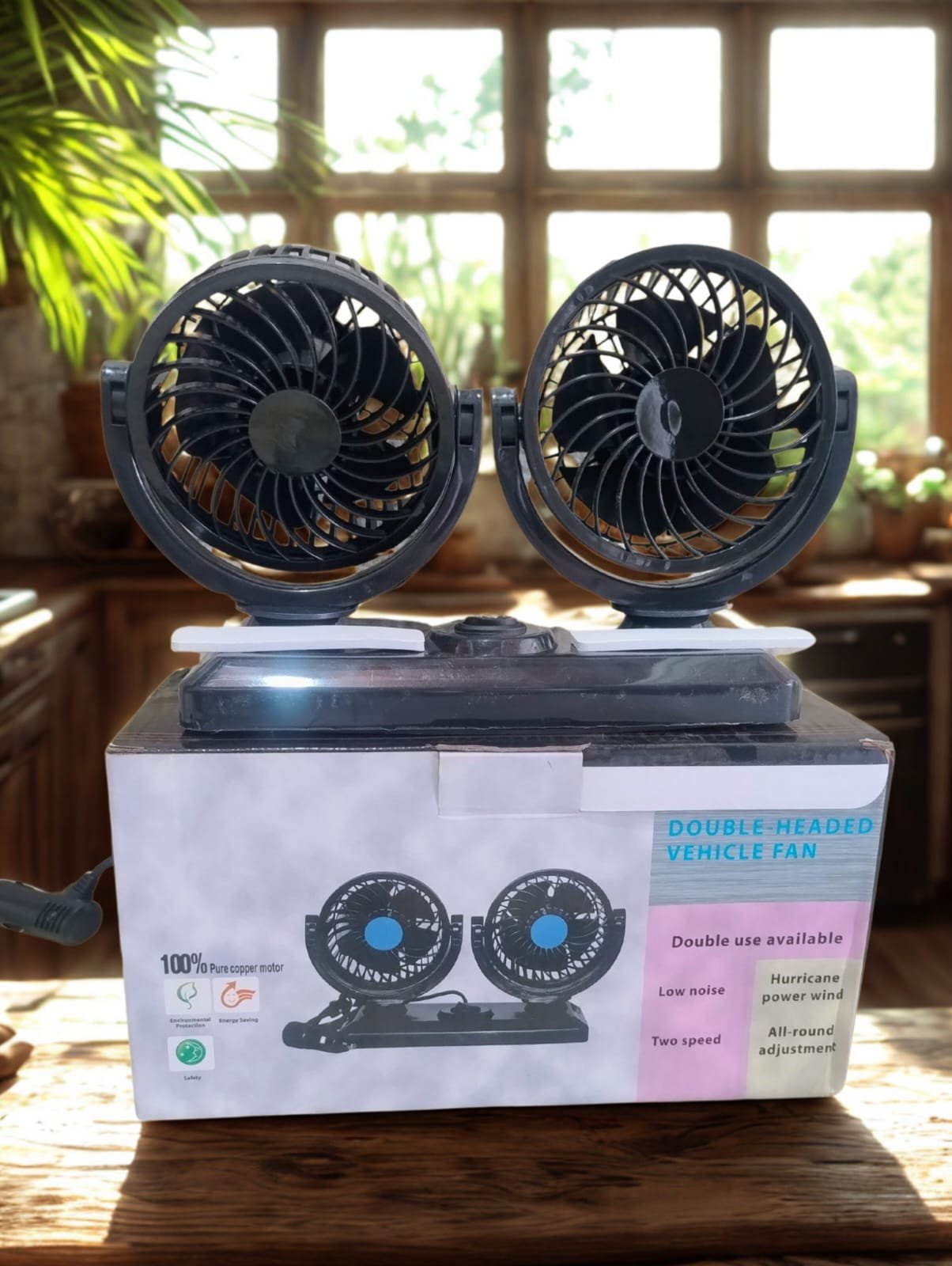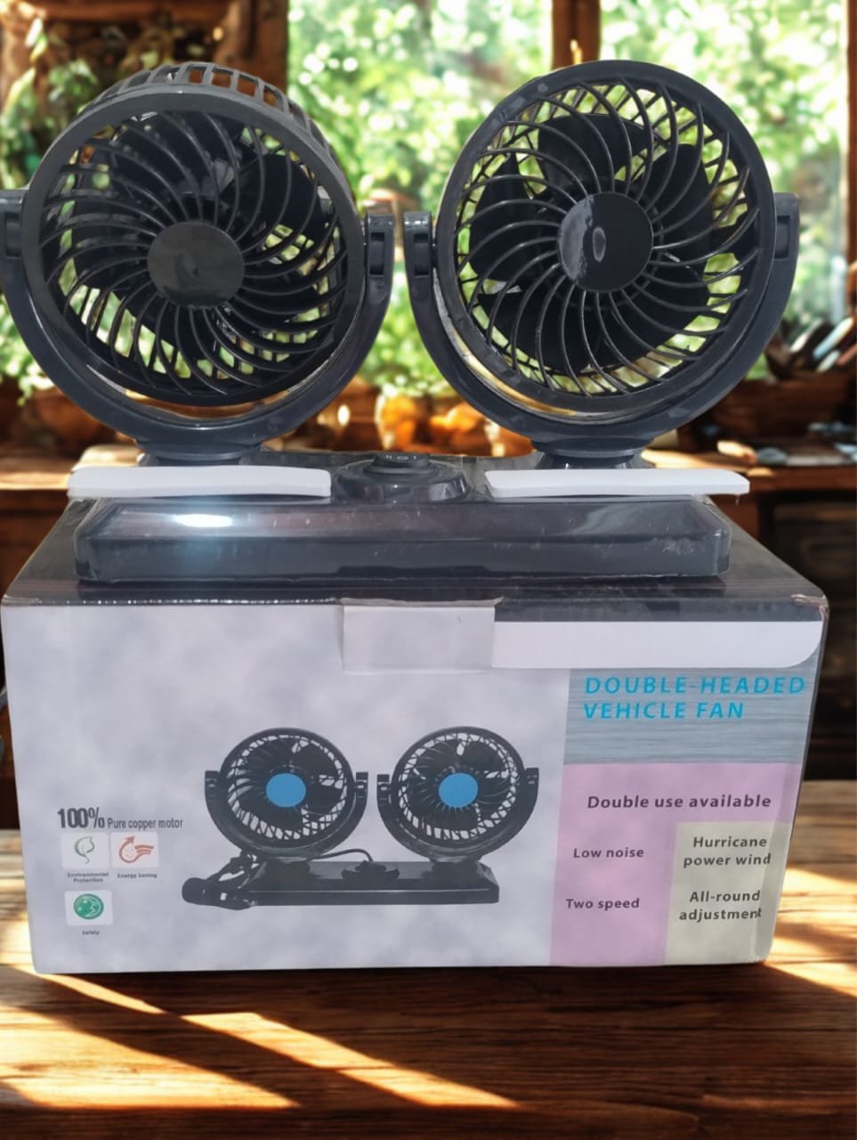 Ventilador de doble cabeza para coche, dispositivo de refrigeración giratorio 360 con pantalla LED, 12V, 24V, 12 velocidades